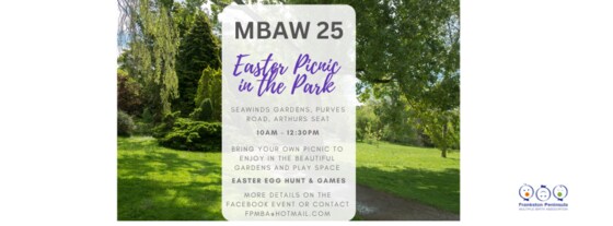 Bring your own picnic to enjoy in the beautiful gardens Easter egg hunt and games galore! More details on the facebook event or contact fpmba@hotmail.com Please select free tickets for each adult and child attending (member or non member) to assist with planning purposes :)